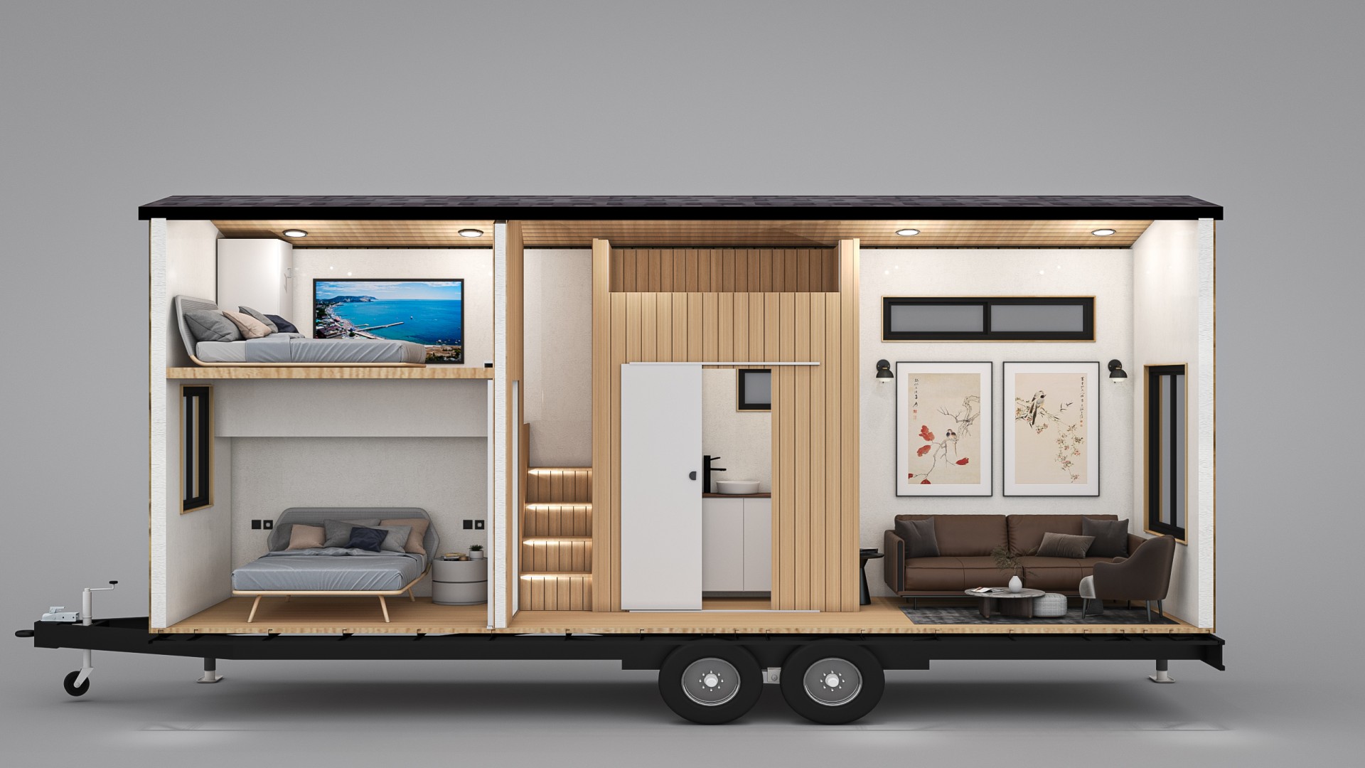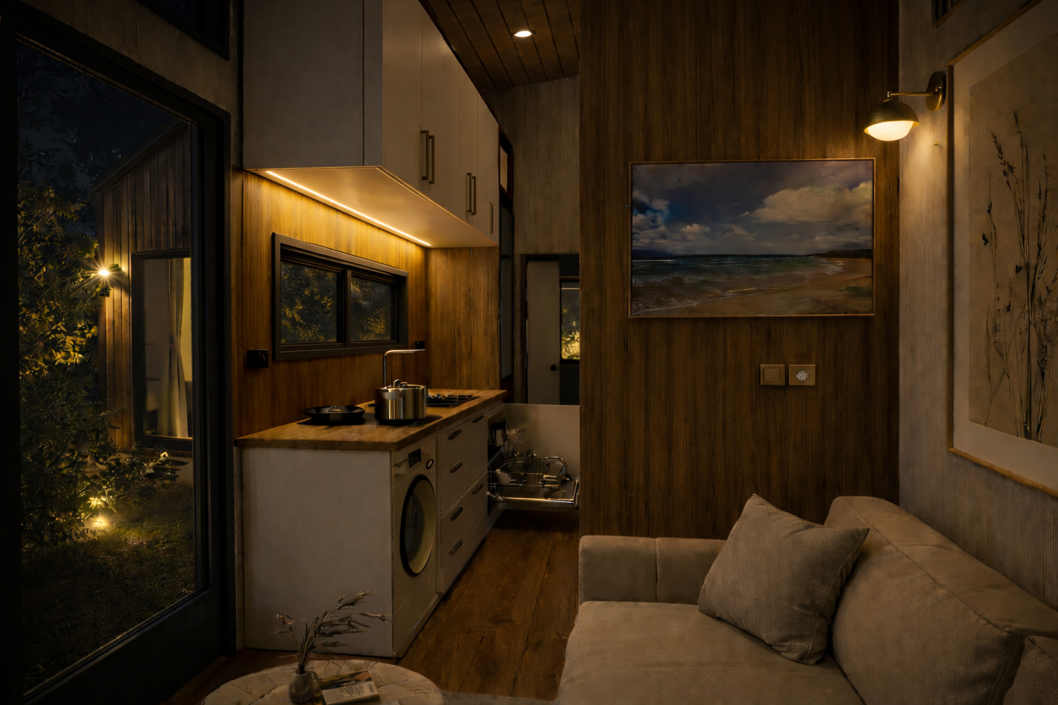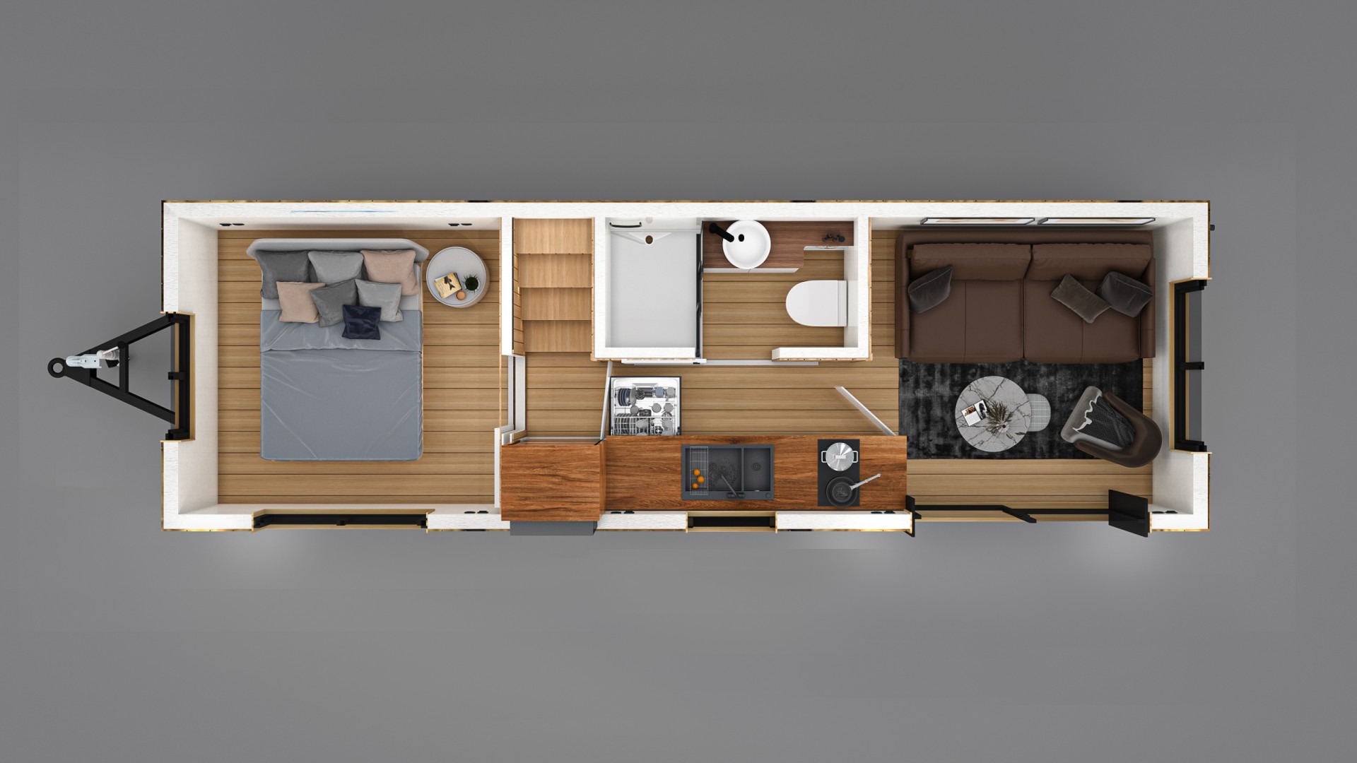 Minimal yaşam çözümleriyle tasarlanan tiny house BEECH modelimizin tüm detayları, kullanılabilir maksimum fayda ile tasarlanmıştır.