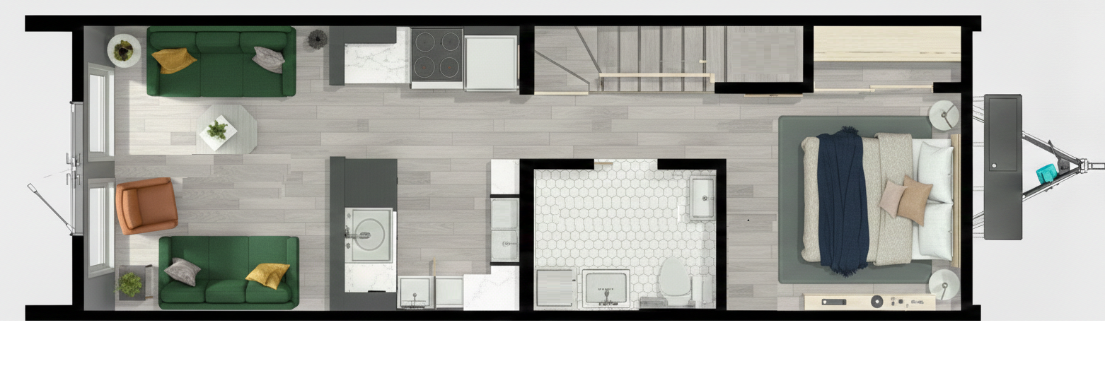 Minimal yaşam çözümleriyle tasarlanan tiny house BEECH S modelimizin tüm detayları, kullanılabilir maksimum fayda ile tasarlanmıştır.