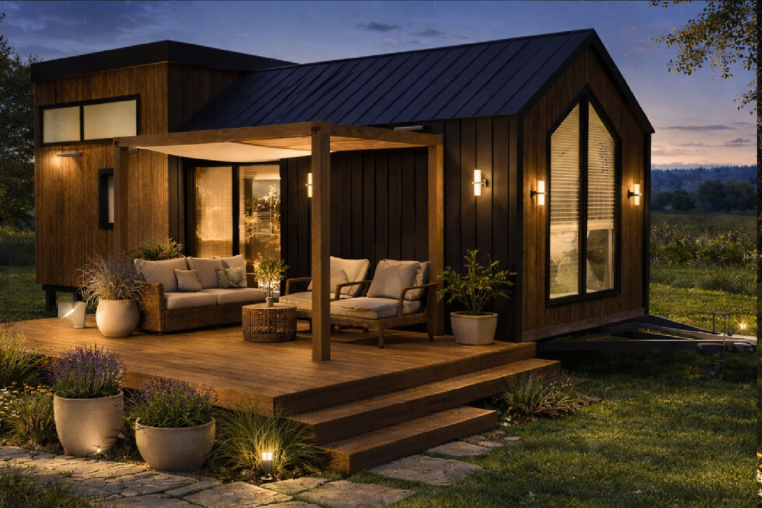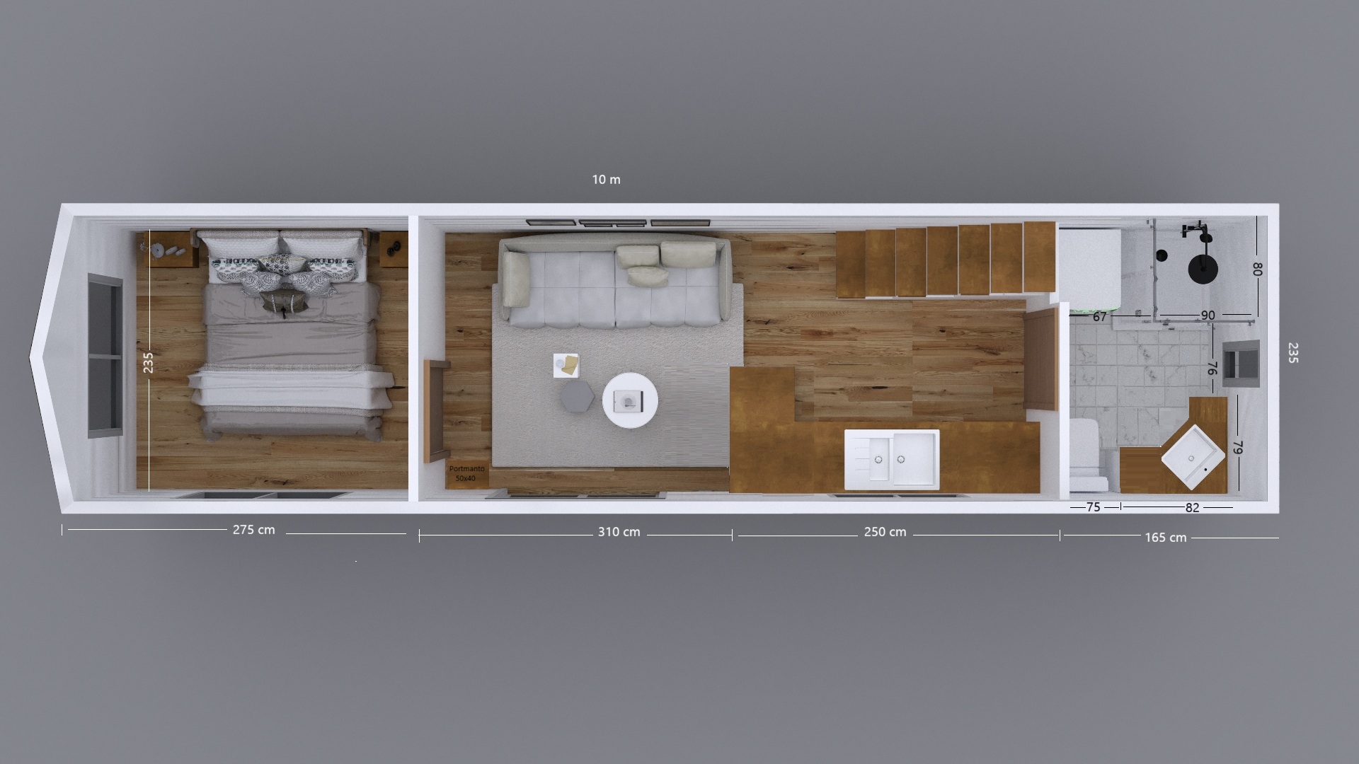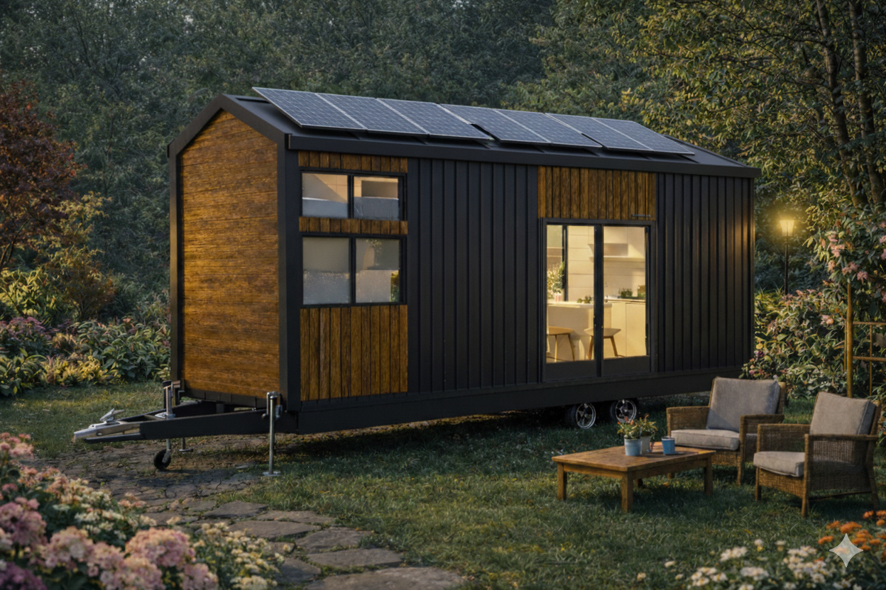 Metal ve ahşabın kombinasyonu ile tamamlanan VIENTO Tiny House modelimiz, oldukça estetik dizayna sahiptir. Modelimiz, 10 metre uzunluğunda, 2,5 metre genişliğinde ve 4 metre yükseklikte olup, 34 metrekare bir yaşam alanı sunar.
