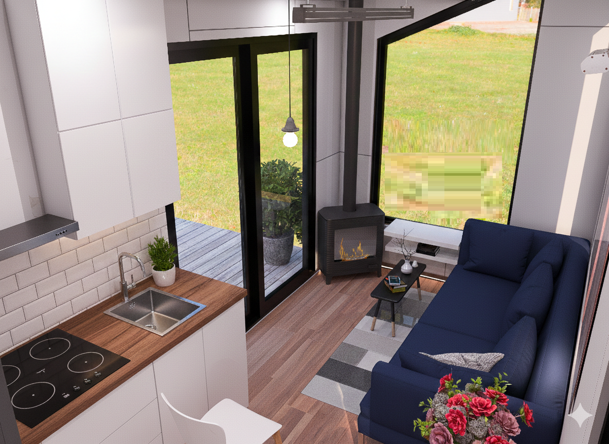 Rahatlığı seven aileler için tasarlanan bu tiny house modelimizde, zemin katta 1 adet yatak odası, loft katında çift kişilik 1 adet yatak odası ile toplam 2 oda bulunmaktadır. Yatak odasının iç alanlarında iyi düşünülmüş sabit dolaplar mevcuttur.