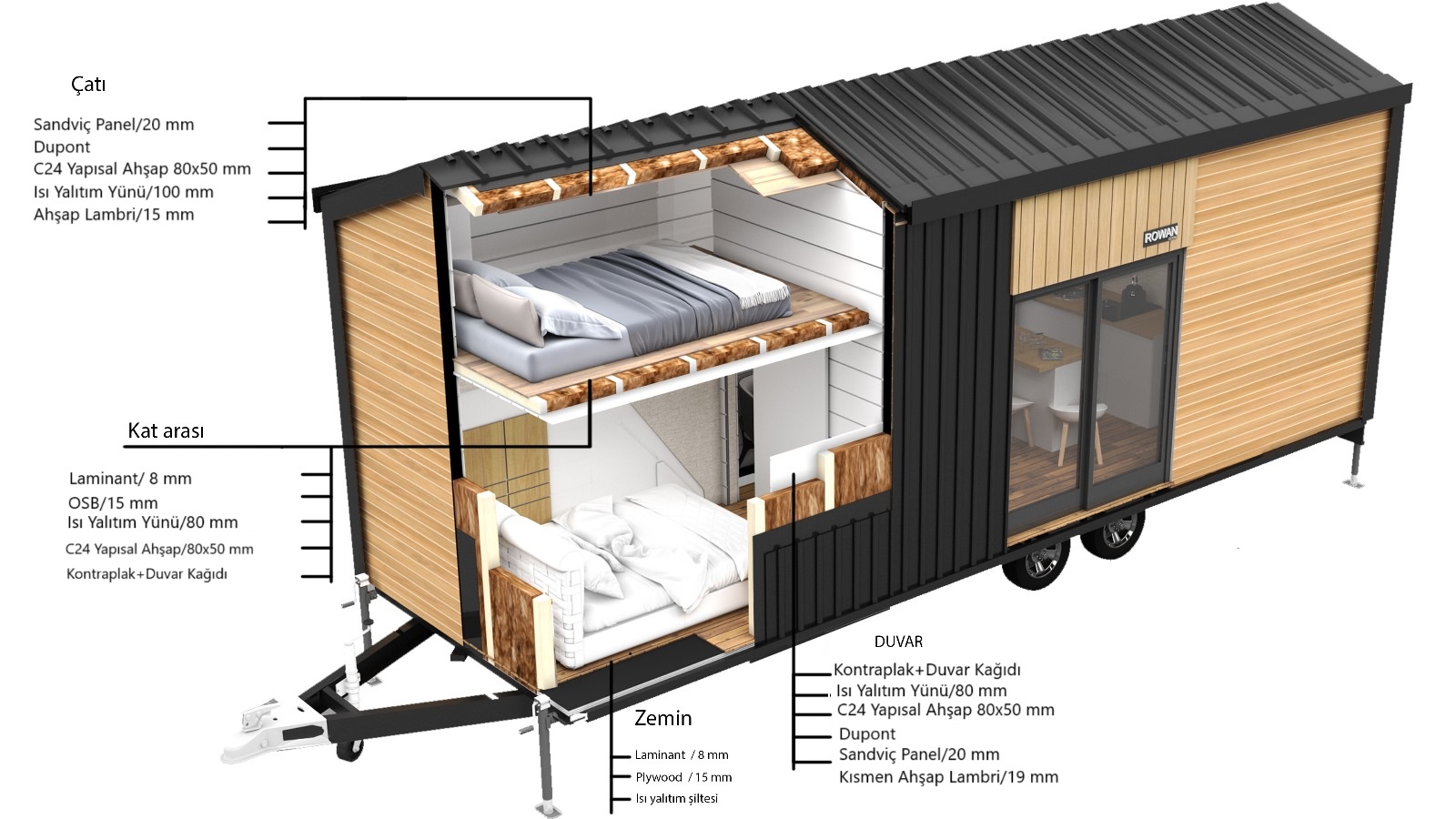 - Avrupa ve Dünyanın 35 ülkesinde, üretimini yaptığımız Roovan Tiny House şasileri geçerlidir.